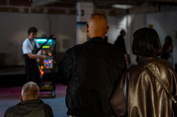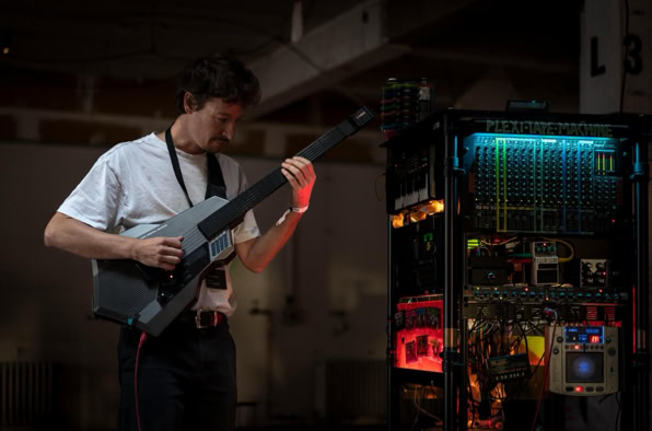 You enter this place – not quite a stage, not quite an installation, more like the transparent belly of a spaceship, neon-coloured from the 1990s. Plexiglass, cables, magnetic tape. The machine: a rebellious block of nostalgia and future. Johannes Till is not just a musician, he is something like a machine interpreter. He feeds it, he hesitates, he lets the thing stumble and sing. Man and machine in co-dependence. Tape is running. Real tape. Cassettes crackle, reels purr. No laptop, no endless playlist from the cloud. Instead: this warm, woolly waft that sounds like an embrace from something long lost. In the end, you don‘t know if this was a concert? An installation? A manifesto against digitalisation? Or simply proof that beauty sometimes lies in noise.